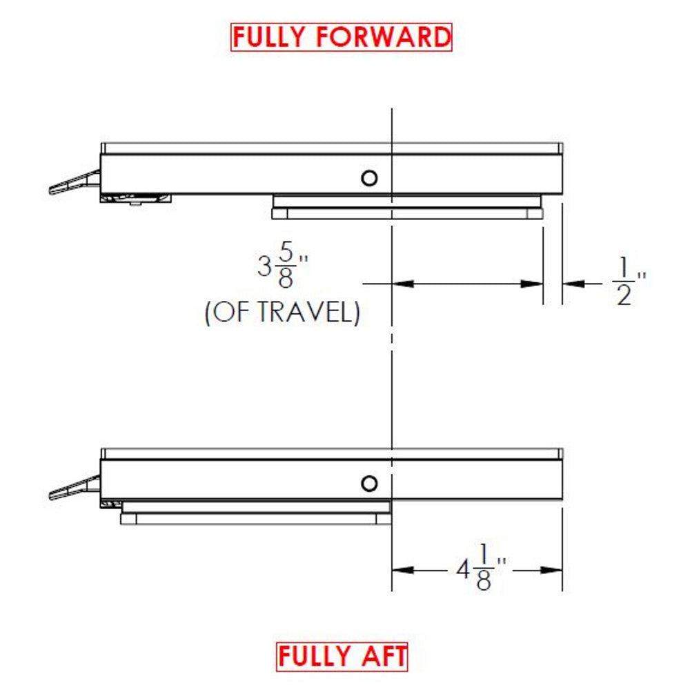 This universal, low-profile design provides frictionless operation and is easily adaptable for a multitude of marine applications. Its high-strength polymer glides provide the smooth movement with a durable locking action. It comes with a front-mounted activation lever, which is easily accessible in all five positions when seated.